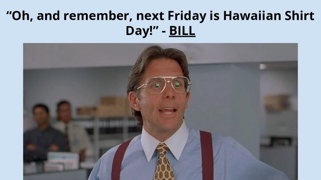 Quotes Bill Lumbergh. So if you could be here around 9 that would be great mmmk.